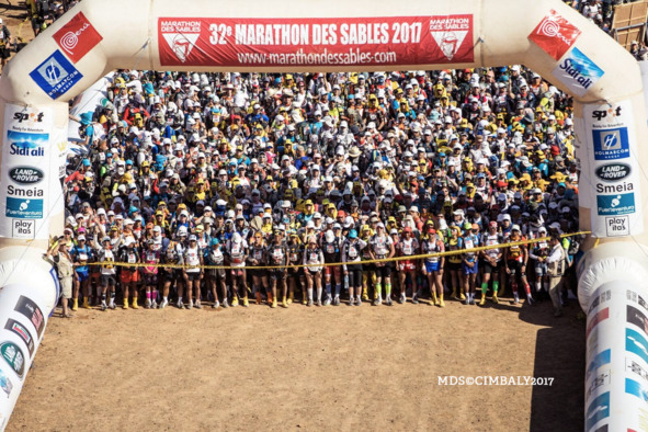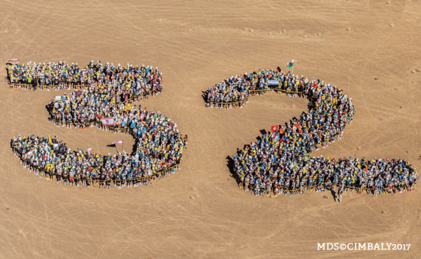 На первый этап я решил взять с собой солнечную панель23 и полный пауэрбанк. Перед стартом нас, как скот, загнали в какие-то непонятные загоны. Мы не поняли, что это. Потом оказалось, что они составляют число 32, – это видно с высоты летящего вертолёта. Небольшое видео на память: Marathon des Sables в 2017 году проходит в 32-й раз. Машем флагами и орём!