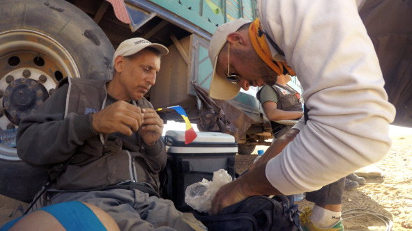 Сварив риса с овощами, я принялся чинить флажок Молдовы: он гордо развевался над моей головой всю дорогу, но на финише я умудрился сломать его. Инструментов у меня не было, пришлось искать запчасти по лагерю. Увидев, что я пытаюсь оторвать от забора кусок проволоки, меня окликнул водитель грузовика.
