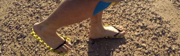Пока я возвращался в бивуак, выражение счастья на моем лице постепенно сменилось страдальческим. Отельные тапочки оказались слишком тонкими, и камни нещадно вгрызались в мои усталые стопы. Пока шёл, у меня созрел план. Я вооружился ножницами, с сожалением отрезал от коврика 15 сантиметров и соорудил себе при помощи шнурка ультралёгкие, супермодные и, главное, архимягкие шлёпанцы, в которых и проходил до самого конца гонки.