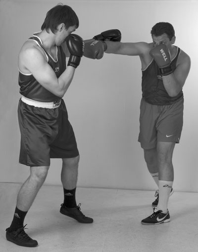 И даже короткие удары передней рукой в корпус в этой ситуации могут сбить сопернику дыхание или за счет неприятных ощущений заставить его опускать руки и открывать голову.