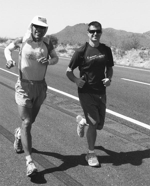 Бретт Стюарт бежит с героем ультрамарафонов Дином Карназесом в пустыне Аризоны во время одного из многочисленных пробегов в США.