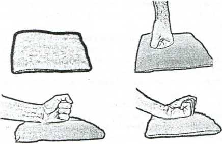 Ниже приведем основные ударные части рук при использовании мешочка с металлическими опилками. Принципиально не имеет значение, в какой последовательности будут наноситься удары: