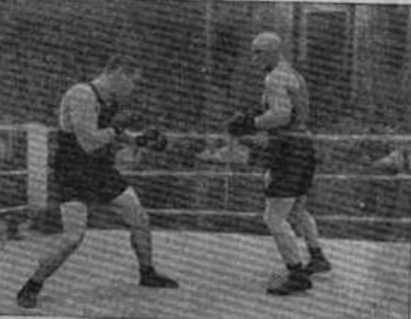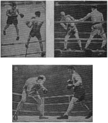 Рис. — 19. Различные боевые позиции: А — слева характерная современна позиции американских боксеров профессионалов (справа — обычная); Б — М. Тиль (слева в характерной для него позиции);