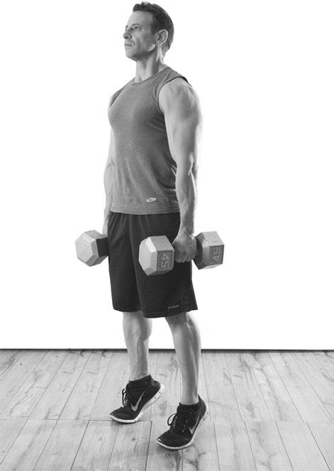 1. Держите гантели в свободно опущенных по бокам прямых руках.