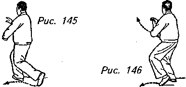 местите обе руки вправо в положение человека, держащего мяч, причем левая ладонь должна находиться около правого бедра, а правая ладонь сверху воображаемого мяча. Взгляд теперь обращен на правое предплечье (рис. 145, 146).