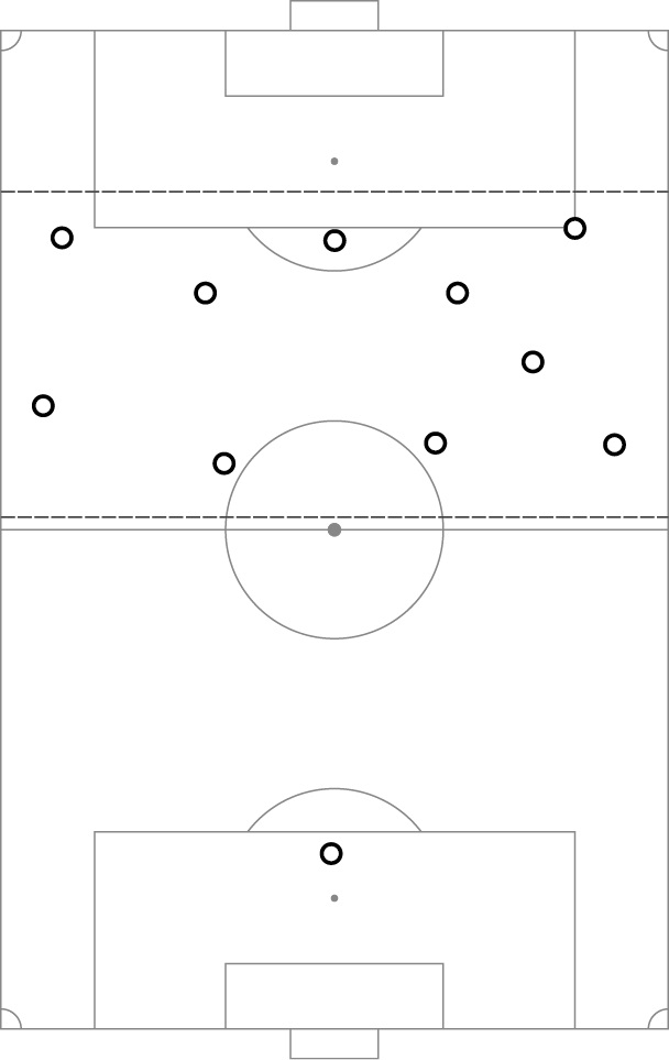 При низком прессинге соперника встречают и останавливают сразу после перехода им средней линии. Это дает оппонентам возможность подойти поближе, тем самым создаются пространства для возможной контратаки