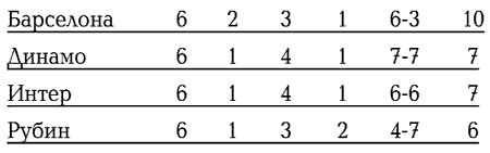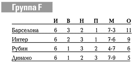 Любопытно, что в параллель «Рубин» взял 4 очка в двух матчах с «Барсой» — после оглушительной победы 2:1 на «Камп Ноу» (пушку Рязанцева помните?) казанцы отстояли дома нулевую ничью. Ох, непростая была группа!