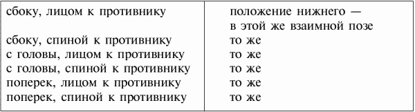 Таблица 4. Взаимные позы при удержаниях в борьбе лежа