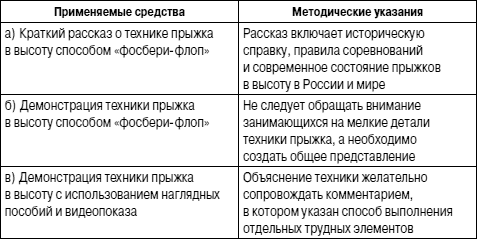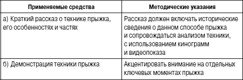 Задача 1. Создать у занимающихся представление о технике прыжка изучаемым способом