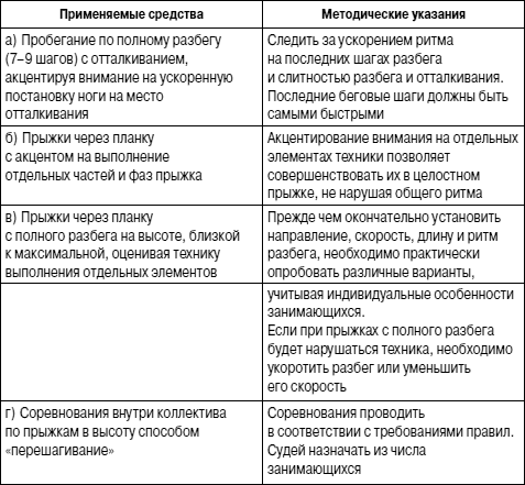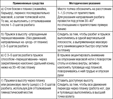 4. Укажите последовательность решения задач при обучении технике прыжка в высоту способом «перешагивание» и их методическую направленность