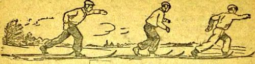 Произведшая толчок нога по инерции сгибается, пятка лыжи отделяется от снега, и ты скользишь на другой ноге. Не старайся нарочно закидывать назад ногу, сделавшую толчок. Это движение должно быть естественным, и получается оно лишь при быстрой, энергичной ходьбе.