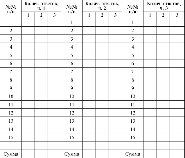 Для каждого признака анкеты укажите номер (шифр) варианта ответа любым знаком, например: «+»