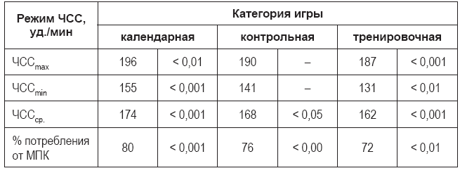 Получить напряженность соревновательной нагрузки за счет тренировочных (двусторонних на тренировке) игр нельзя. Все характеристики исследованных игр имеют достоверные различия с высоким уровнем значимости, кроме максимальных значений ЧСС в контрольных и тренировочных играх.