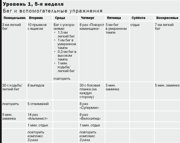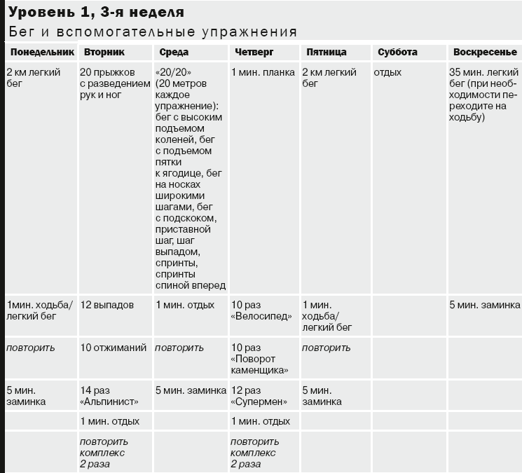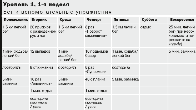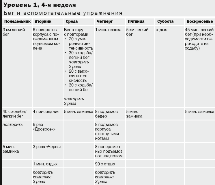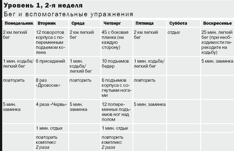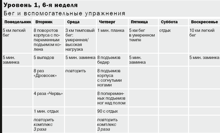 Примечание. Разомнитесь 5 минут перед интервальной тренировкой или вспомогательными упражнениями: растягивайтесь после каждой тренировки (интервалы кардиоупражнений, вспомогательные упражнения). На с. 169–174 вы найдете описания упражнений для разминки и растяжки. Используйте шкалу на с. 97 для определения уровней нагрузки (легкой, умеренной и высокой).