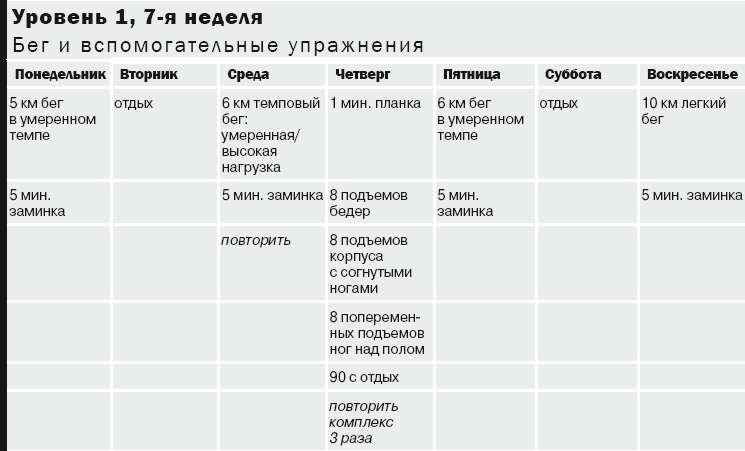 Темповым бегом называют бег в течение заданного промежутка времени с высоким уровнем нагрузки – выше 85 процентов максимального усилия или целевой частоты сердечных сокращений (с. 97). Этот темп относителен и зависит от подготовки; по мере вашего прогресса он будет увеличиваться. Помните об этом, когда какой-нибудь бегун попытается впечатлить вас своей скоростью темпового бега или будет стараться убедить вас в том, что километр следует непременно пробегать за определенное время. Ваш темп бега присущ только вам, и он будет меняться от месяца к месяцу по ходу тренировок.