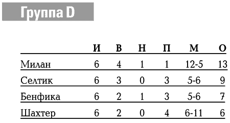 Выступление в группе вышло одним из, пожалуй, самых обидных в истории клуба. Стартовав двумя победами (2:0 дома над «Селтиком» и 1:0 в гостях над «Бенфикой», феерил Жадсон), команда Мирчи Луческу уверила болельщиков, что вот сейчас-то уж точно… Однако «Милан» снова не оценил атакующее рвение дончан — 4:1 на «Сан-Сиро», 3:0 на «Донбасс Арене» — и, такое впечатление, морально надломил украинскую команду. Не сумев проявить характер, горняки проиграли и два оставшихся матча — 1:2 «Селтику» (вели в счете, а победный мяч Донати провел на 90 + 2-й минуте) и 1:2 «Бенфике» (горели 0:2 уже к 22-й минуте и особых шансов спастись не создали), слетев на последнее место в группе. Полагаю, это был второй из двух моментов 12-летней работы румынского тренера в «Шахтере», когда Луческу оказался близок к увольнению — чемпионат страны был проигран без вопросов, а тут еще и такое в ЛЧ. Ринат Ахметов, как и после приснопамятного поражения от «Севильи» в Кубке УЕФА с голом Палопа в марте, удержался от резких движений и тем самым поступил мудро.