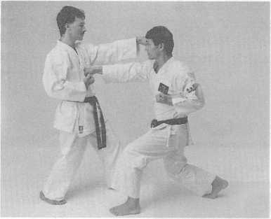 Еще одним примером служит ТСУКИ-УКЭ (ударный блок). Когда соперник бьет вас, ваш контрудар должен пересечься с ударом соперника и отклонить его, в то время как сам достигает цели.
