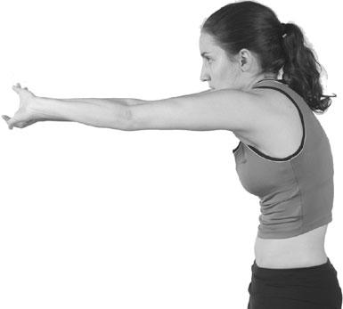 1. Станьте прямо, ноги на ширине плеч, вытяните руки прямо перед собой. Переплетите пальцы в замок и поверните кисти ладонями вперед. Спину держите прямо.