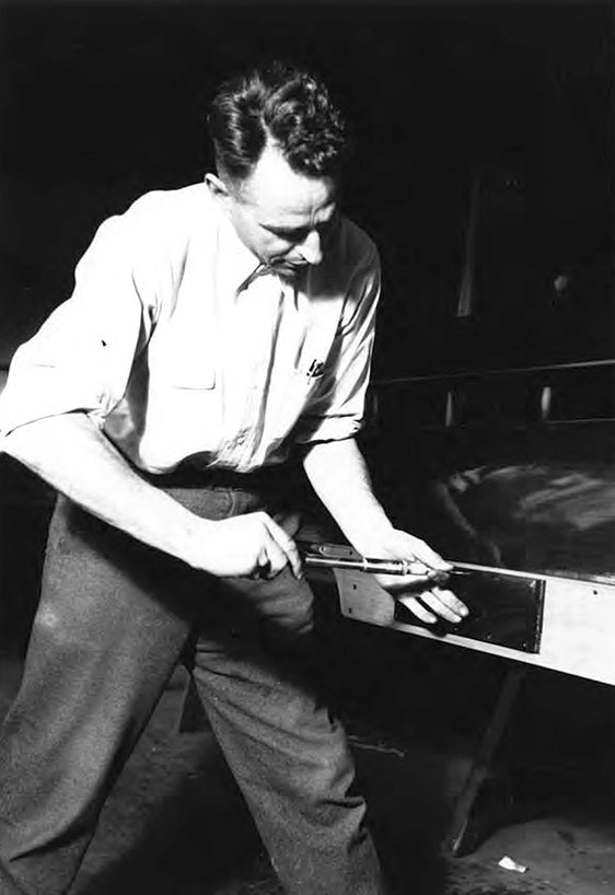 До самого 1927 года он строил суда так же, как отец учил его еще в Англии. Сначала он долго работал над идеально ровной двутавровой балкой длиной более восемнадцати метров и сооружал изящную раму из ели и северного ясеня. Потом он осторожно соединял и прибивал полоски испанского кедра к ребрам рамы, чтобы сформировать остов. По этой технологии ему требовалось терпеливо вручную запилить шляпки тысяч латунных гвоздей прежде, чем он сможет поверх наложить несколько слоев морского лака. Подборка и прибивание обшивки было очень трудоемким и кропотливым трудом. В любой момент движение стамески или неаккуратный удар молотка мог разрушить результат многодневных трудов.