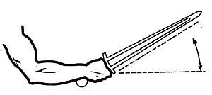 4. Не пытайтесь адаптировать спортивную легкоклинковую технику (шпага, рапира, сабля) для боя тяжелым клинком. Помимо меньшего веса и узкого боевого пространства (дорожки) спортивные техники имеют кардинальное препятствие для их использования. Речь идет о постановке руки и положении кисти.