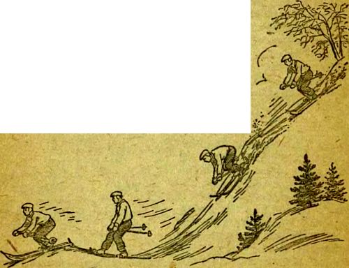 Склон горы редко имеет ровную поверхность; то он круче обрывается книзу, то становится более отлогим. Устоять на ногах, спускаясь по неровному склону, довольно трудно. Но и этому искусству можно научиться, если упорно тренироваться.