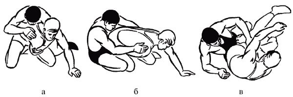 Рис. 1.57. Откат переходом с захватом разноименного запястья сзади-сбоку