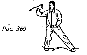 Движение 2: Медленно перенесите вес своего тела на правую ногу. Отведите левую стопу к правой, не отрывая кончиков пальцев ее от земли. Одновременно с этим пусть ваша правая рука передвинется вперед к правой верхней части корпуса (согните запястье, собрав все пальцы к большому, чтобы ладонь приобрела форму клюва). Левую руку опустите вниз, чтобы она прошла поперек живота вправо, а затем вверх и остановилась бы напротив правого плеча. Кисть внутренней стороной направьте к себе. Взгляд по-прежнему обращен на левую руку (рис. 369, 370).