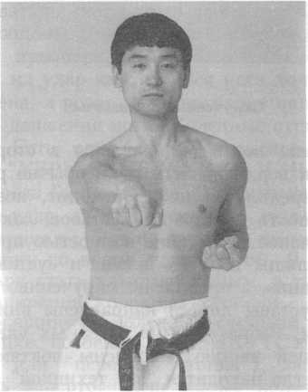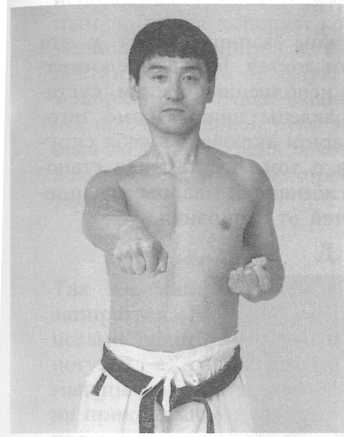 Поэтому грудная клетка никогда не должна быть расширена: ни при исполнении техники, комбинаций, Ката; ни при свободном спарринге. Она все время должна быть сжата без какого-либо зазора между ребрами таким образом, чтоб в известной степени могла выдержать неожиданный удар.