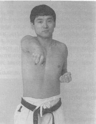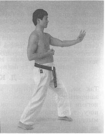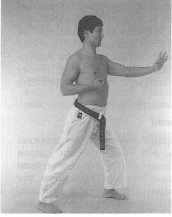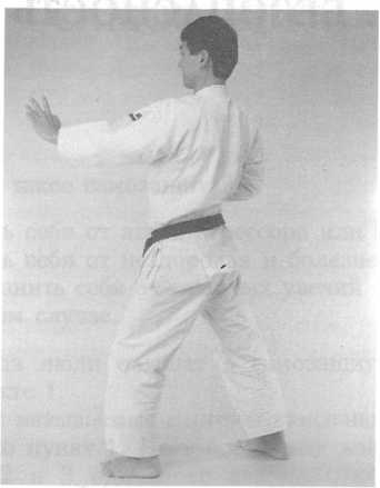 Некоторые школы учат по-другому, но меня учили вытягивать лодыжку во время удара ногой. Я нашел, что это помогает удару стать хлыстообразным, а также уменьшает опасность запирания коленных суставов. Другой важный момент, относящийся к коленным суставам, касается стоек. В любой стойке, особенно в ДЗЕНКУТСУ-ДАЧИ (“длинная стойка” или “передняя стойка”), заднее колено не должно быть заперто. Если заднее колено заперто, таз сдвинется назад и тазовая кость не сможет занять горизонтальное положение, как упоминалось в разделе А “Осанка”. Итак, запирание колена задней ноги нарушает правильную осанку, что плохо для позвонков, и поэтому этого надо избегать.