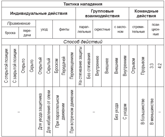 Классификация тактики нападения полевого игрока представлена в табл. 7.