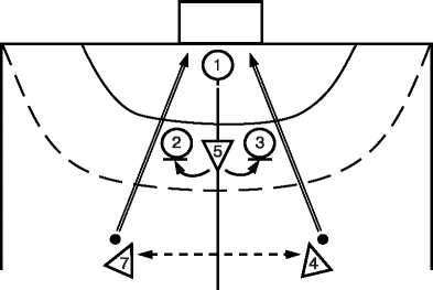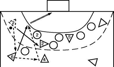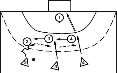 Рис. 46. Взаимодействие полусреднего и крайнего нападающих при обратном уходе крайнего