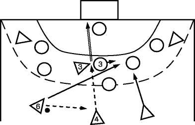 Рис. 45. Взаимодействие разыгрывающего и линейного при открытом уходе полусреднего нападающего
