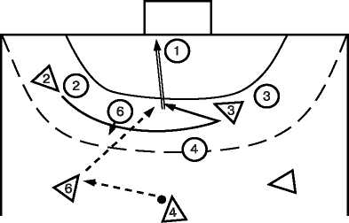 Рис. 44. Взаимодействие разыгрывающего и полусреднего при открытом уходе крайнего нападающего