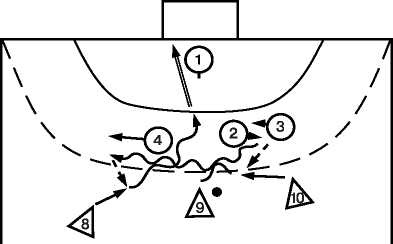 Рис. 59. Стремительное нападение «отрыв» после перехвата мяча защитником