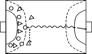 Рис. 58. Стремительное нападение «отрыв», организованное вратарем