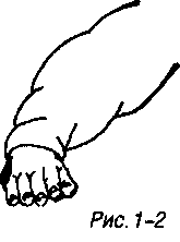 Четыре пальца сложены вместе и выпрямлены, большой палец плотно подогнут к внутреннему ребру кисти, запястье вобрано внутрь (рис. 1-2).