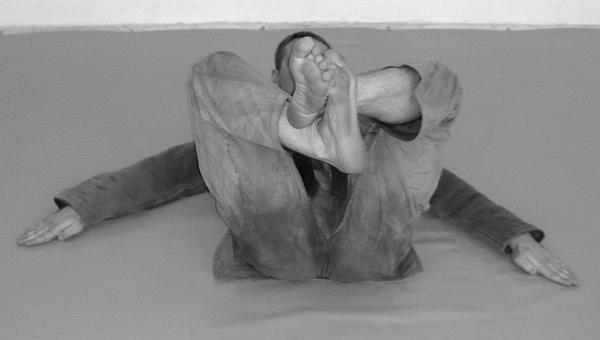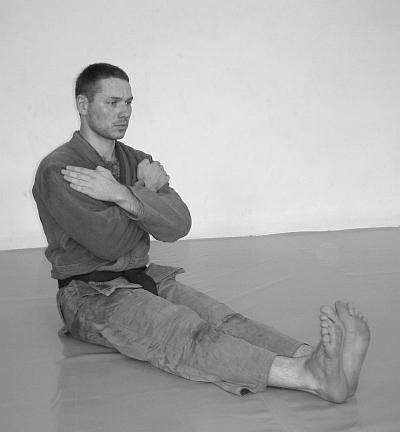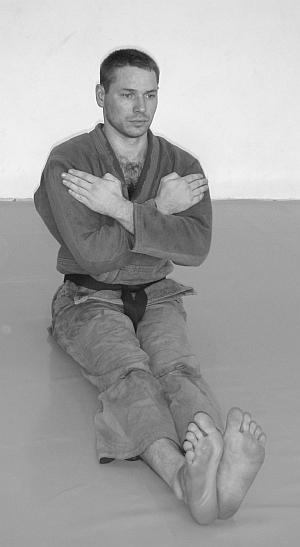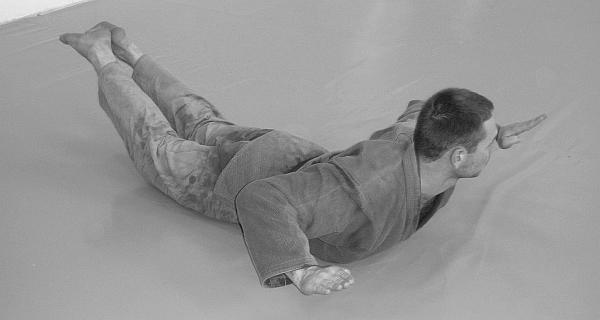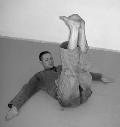Упражнение второе.Отработка базовых навыков при падении набок. Выполняется 8—10 перекатов с левого бока на правый и обратно.