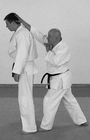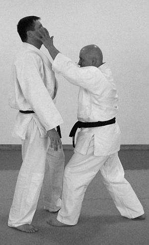 Начало выполнения приема предполагает обозначение выполнения отвлекающих действий или нанесение отвлекающего удара (фото 8). После выполнения техники броска в обязательном порядке отрабатываются действия, завершающие бросок. Например, удар ногой.