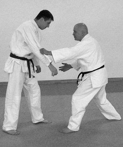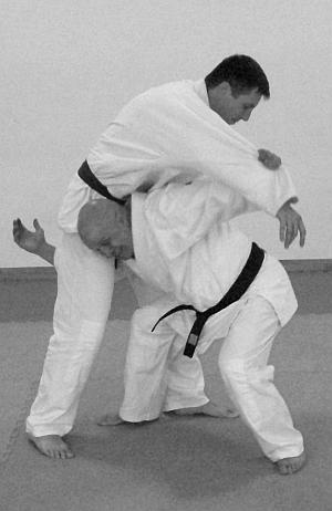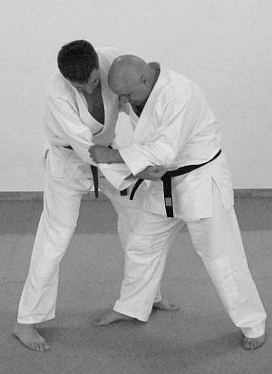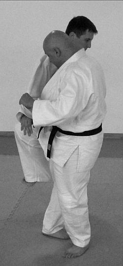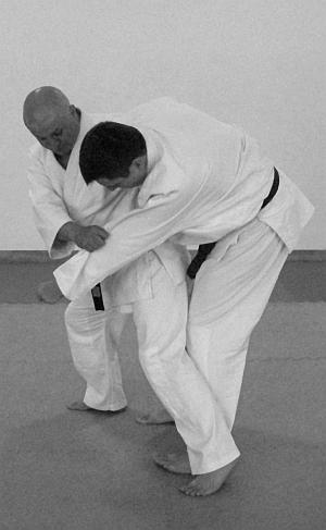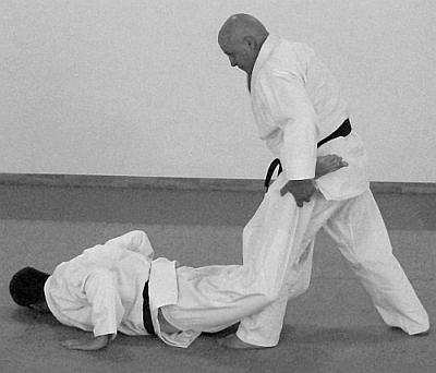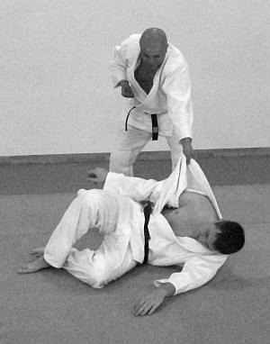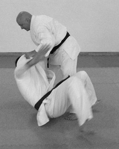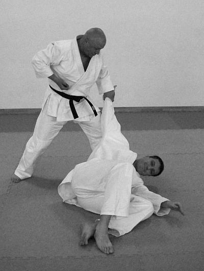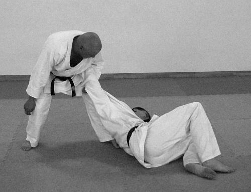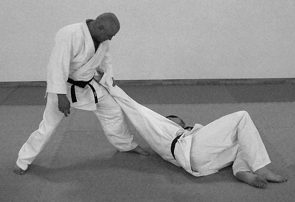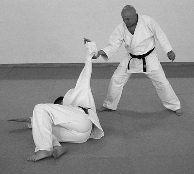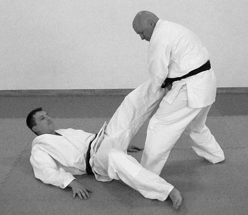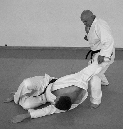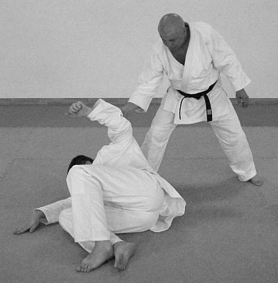 В этом варианте выполнения приема и техники броска представлено выполнение техники завершения броска рывком правой рукой левой руки противника на себя. Действия, направленные на то, чтобы лишить противника возможности быстро встать после броска – фото 30.