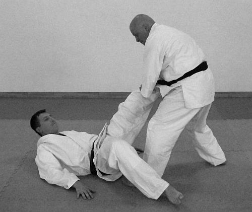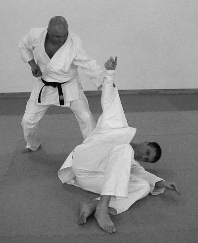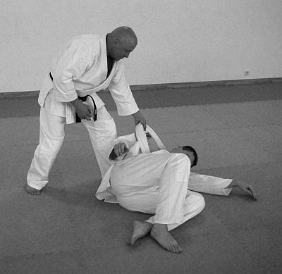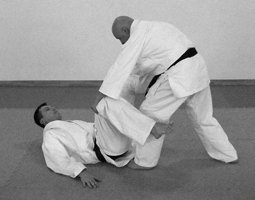 В этом варианте выполнения приема и техники броска представлено выполнение техники болевого приема на ногу (ущемление ахиллесова сухожилия, (фото 11— 15).