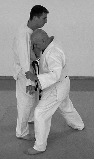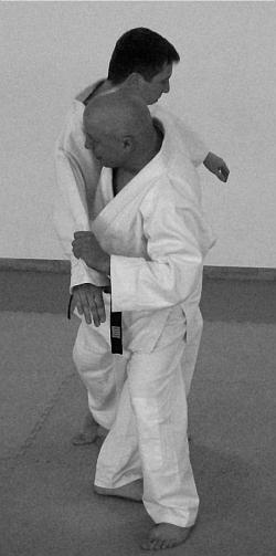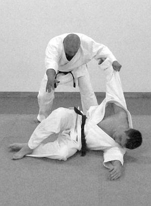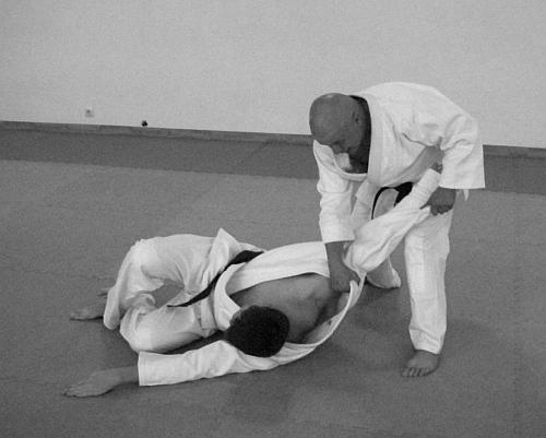 В этом варианте выполнения приема и техники броска представлено выполнение техники удушающего приема воротом кимоно – фото 43—47.
