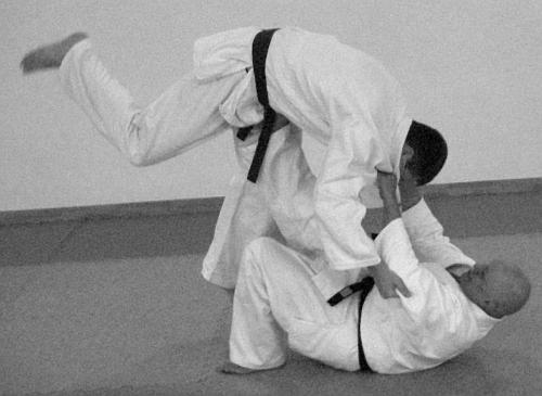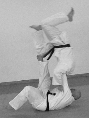6. Бросок через себя с упором ногой в живот в падении.