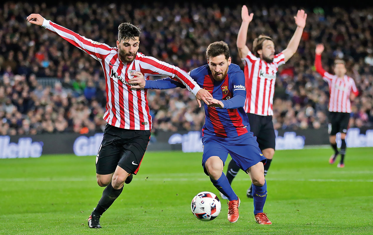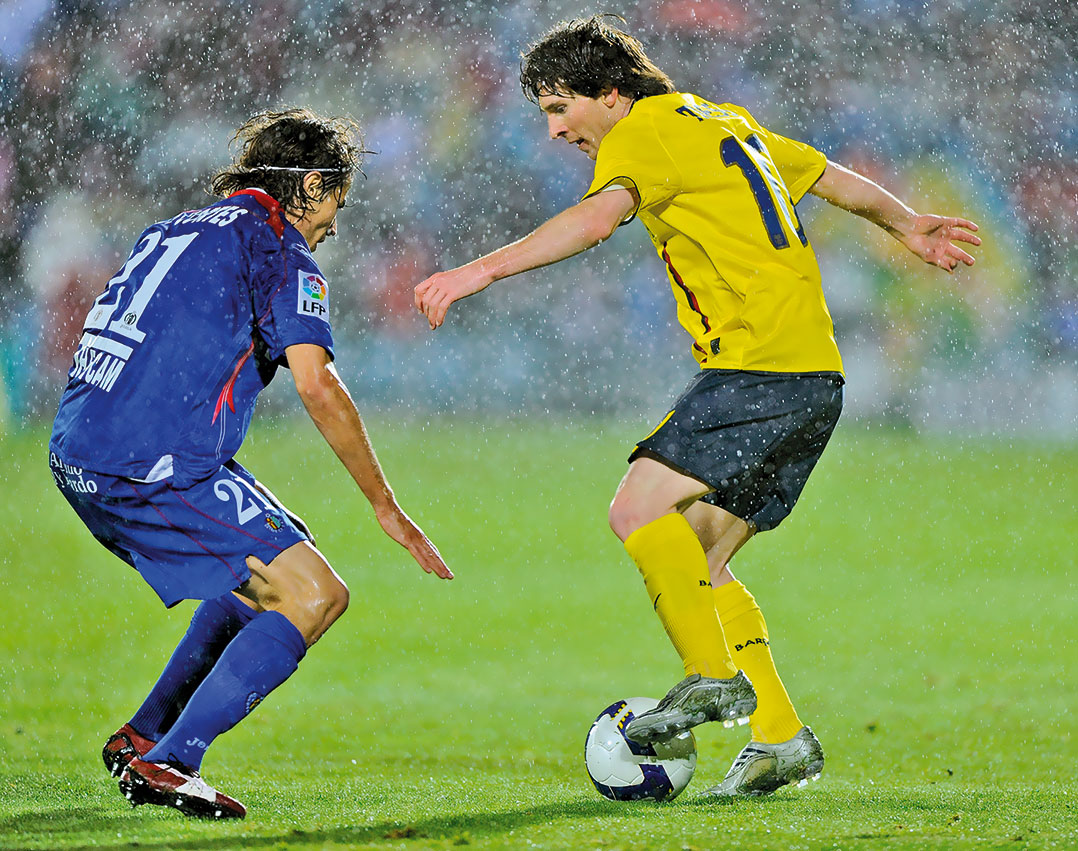 Попробуй отбери! Лионель Месси столкнулся в дуэли с защитником «Хетафе» Давидом Кортесом в матче Ла Лиги, 18 апреля 2009 года.