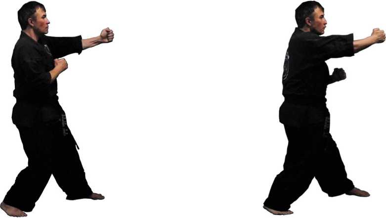 Тэквондо, как раз таки попробовало учесть эти особенности бокса, снизить эти преимущества, которые он имеет против каратэ и изменить каратистскую базу под свои нужды. Это началось еще с Чой Хон Хи, но продолжил работу Джун Ри, который в своем стиле не только поднял кверху руки в почти в боксерское положение, но и вообще является одним из основоположников такого направления как кикбоксинг, объединяющий боксерскую технику рук с ногами тэквондо.