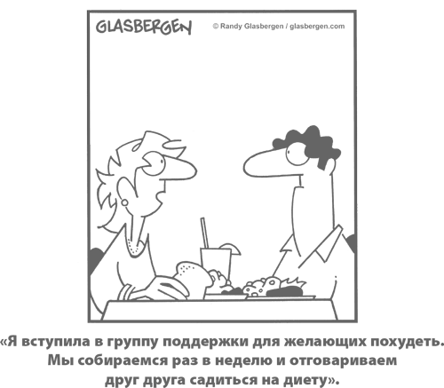 Заканчивая читать мой курс по психологии питания, я говорю моим студентам: «Вы уже не сможете забыть это; теперь вы стали другими людьми». Я спрашиваю их, как они собираются распорядиться полученной информацией. Обычно они отвечают, что больше не будут покупать и есть фастфуд. Они навсегда запоминают, как опасно неправильное питание и ожирение. У них вырабатывается более реалистичный взгляд на собственное тело и тела других людей. Но важнее всего то, что, скорее всего, они никогда не сядут на диету.