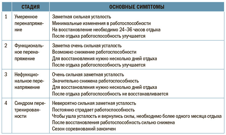 Это связано с развитием симптоматики от ранней стадии до поздней. Многие из этих симптомов характерны и для таких заболеваний, как синдром хронической усталости, болезнь Лайма или инфекционный мононуклеоз на ранних стадиях. Собственно, атлет, в течение длительного времени испытывающий глубокое утомление наряду с любыми другими симптомами, приведенными в табл. 10.1, должен обратиться к врачу и проверить, нет ли у него этих и других аналогичных заболеваний. Наиболее распространенным способом диагностики перегрузок на занятиях будет исключение возможных проблем с похожими симптомами.