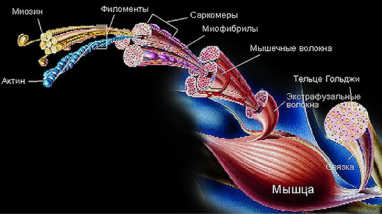 Эти образования непосредственно не участвуют в поднятии тяжестей. По сути дела, они являются разновидностью проприорецепторов (проприоцепторов), чувствительных нервных окончаний, с помощью которых мозг контролирует положение нашего тела в пространстве, включая положение конечностей. тела. Когда мышца растягиваются, то же самое поневоле происходит и с мышечными веретенами. При этом они «фиксируют», как быстро и до какой степени удлиняются мышечные волокна, и передают эту информацию в центральную нервную систему. Если мышцы растягиваются слишком быстро или слишком сильно, от мышечных веретен поступает сигнал на «включение» обратного действия, то есть мышцы начинают сопротивляться растяжке, пытаясь сократиться.