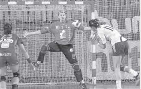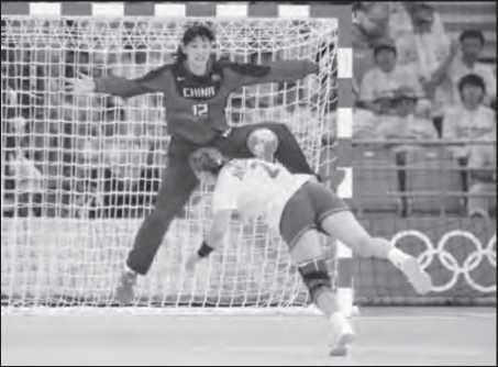 Рис. 33. Мяч за ворота отбивает змс, трехкратная чемпионка мира Мария Сидорова