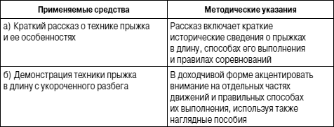 Задача 1. Создать у занимающихся представление о технике прыжка в длину с разбега