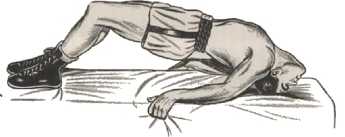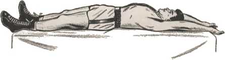 Лучше всего выполнять упражнения на пресс лежа на спине на достаточно мягкой поверхности, такой, как коврик или несколько слоев полотенца. Лежишь, растянувшись, держишь ноги вместе, руки вытягиваешь назад, дальше головы (рис. 84 А и Б).